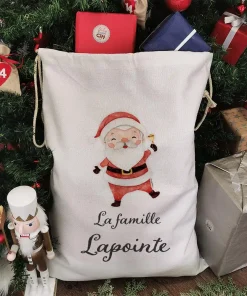Hotte de Noël XXL personnalisée – “Les cadeaux de …” – Père Noël