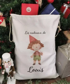 Hotte de Noël XXL personnalisée – “Les cadeaux de …” – Lutin (Garçon)