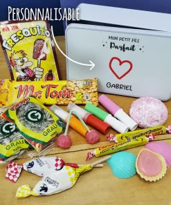 Coffret bonbons des années 80 personnalisé “Mes petits enfants parfaits” (Boîte en métal)