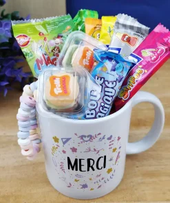 Mug personnalisable – “Merci” – Collection arc-en-ciel – cadeau maitresse, Atsem, Nounou…