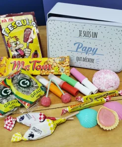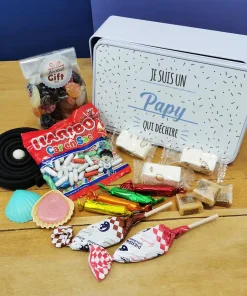 Coffret bonbons des années 60 “Pour papy qui déchire” (Boîte en métal) – cadeau personnalisé