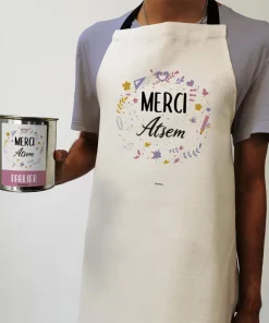 Tablier de cuisine “Merci” personnalisable – collection florale