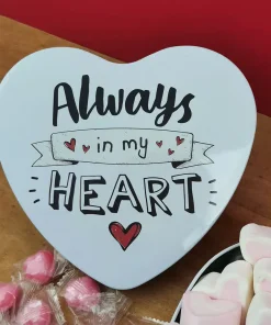 Coffret Cadeau St Valentin : Boîte en coeur “Always in my heart ” remplie de bonbons (Blanche)
