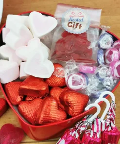 Coffret Cadeau St Valentin : Boîte en coeur “Always in my heart ” remplie de bonbons – Rouge