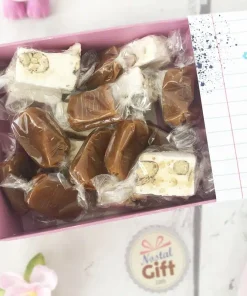 Boîte de 10 nougats tendres et 10 caramels au beurre salé – “Bonne fête maman”