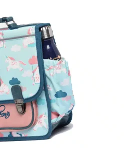 Cartable 35 cm rétro Turquoise Licorne – Caméléon – Maternelle et CP