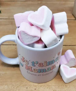 Mug “Je t’aime maman” et ses guimauves coeurs x10 – cadeau personnalisable