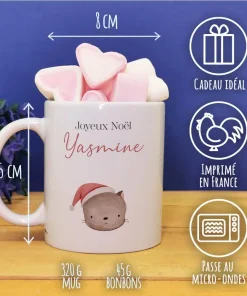 Mug “Joyeux Noël ” personnalisé et ses guimauves coeurs x10 – Chat de Noël