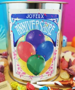 Coffret bonbon ancien : Boîte de conserve remplie de bonbons “Joyeux anniversaire”