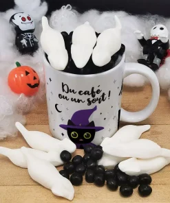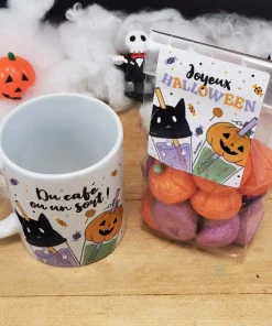 Mug bonbon chat noir – mug Halloween rempli de 10 souris et 100gr de dragibus noir