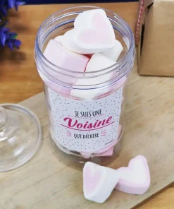 Bonbonnière coeurs guimauve x15 “Je suis une voisine qui déchire”