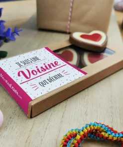 Cœurs au chocolat au lait rouge et blanc x4 “Je suis une voisine qui déchire”